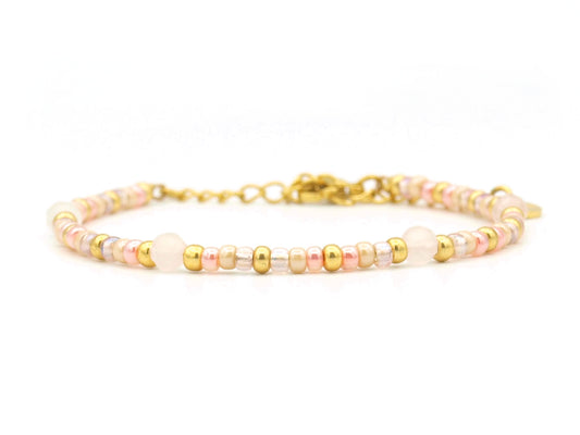 Bracelet Cinta rose quartz, silver or gold stainless steel