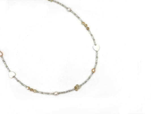 Necklace Fira Love pearl and citrine, silver or gold stainless steel