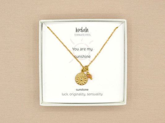 Necklace rock sun- sun stone, silver and gold stainless steel