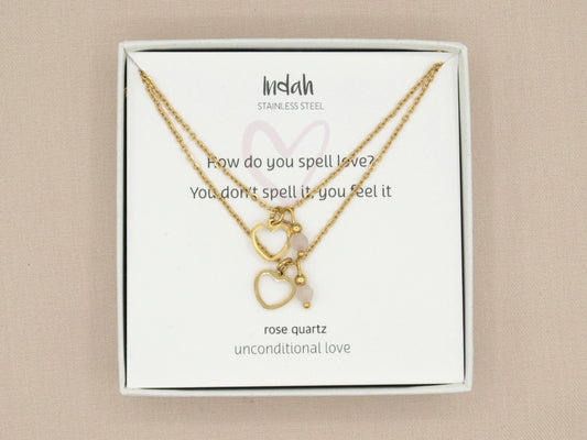 Necklace set mother and daughter rose quartz in silver or gold stainless steel