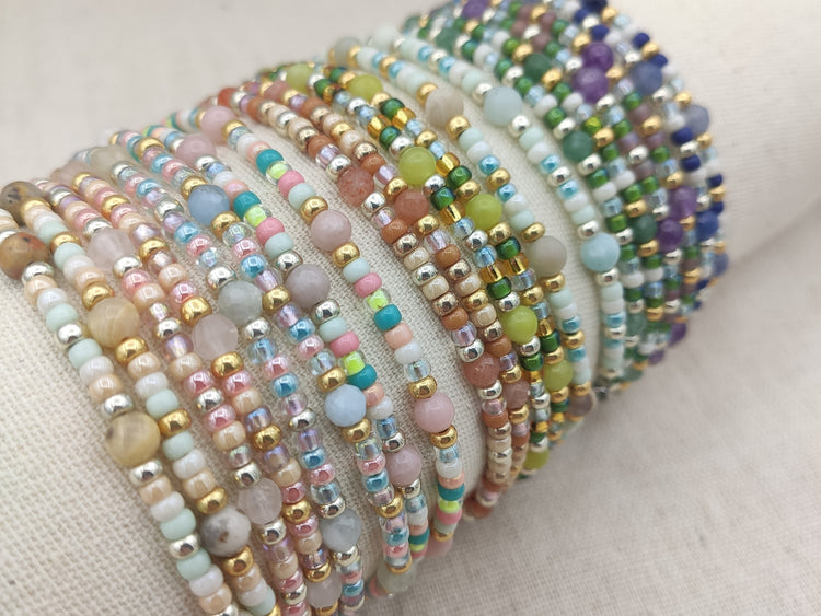 Alle armbanden op een rijtje met uitzondering van de morse code armbanden.
