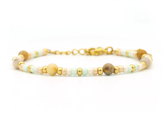 Armband Fira amazoniet en aventurijn, zilver of goud roestvrijstaal