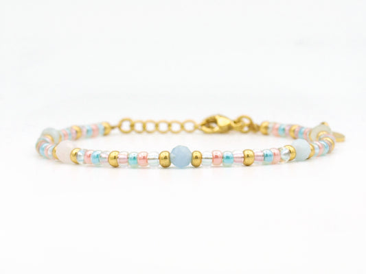Armband Cinta morganiet, zilver of goud roestvrijstaal
