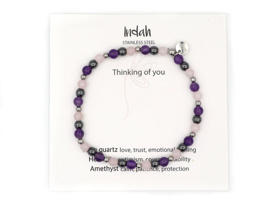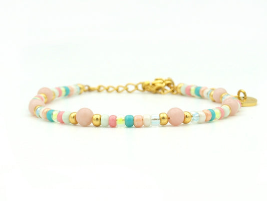 Armband Fira rozenkwarts, zilver of goud roestvrijstaal