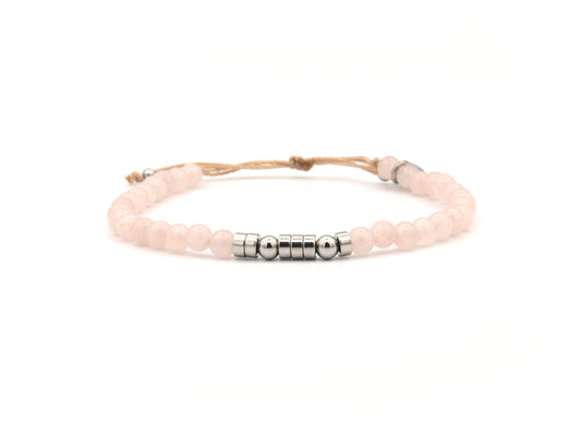Persoonlijke morse code armband, rozenkwarts en rvs