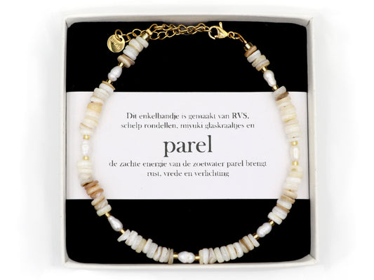 Enkelbandje Paru zoetwater parel, zilver of goud rvs