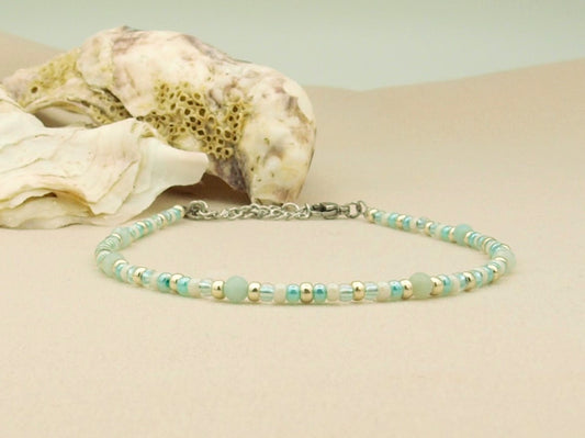 Enkelbandje Fira amazoniet en aventurijn, zilver of goud roestvrijstaal