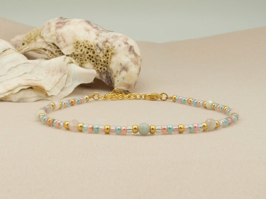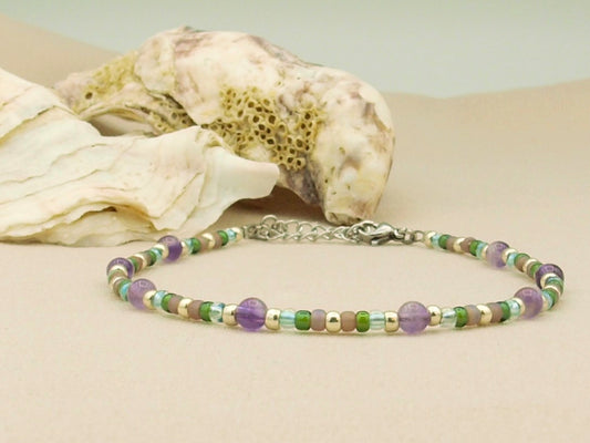 Enkelbandje Fira morganiet en amethyst, zilver of goud roestvrijstaal