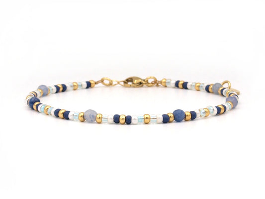 Enkelbandje blauwe kwarts, zilver of goud rvs