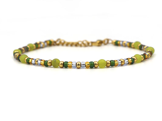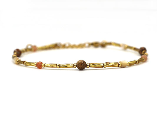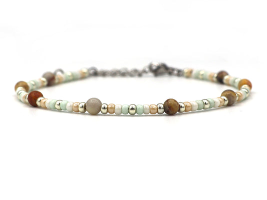 Enkelbandje Fira jaspis en zonnesteen, zilver of goud roestvrijstaal