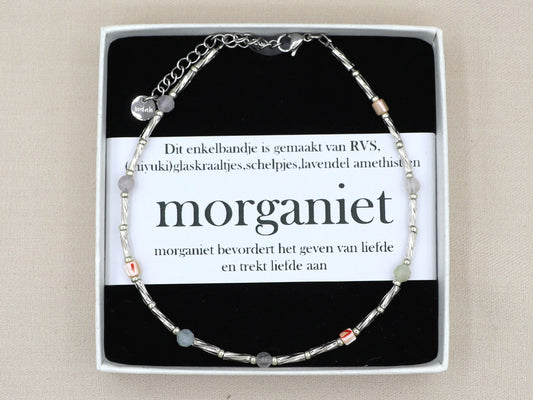 Enkelbandje morganiet, zilver of goud rvs