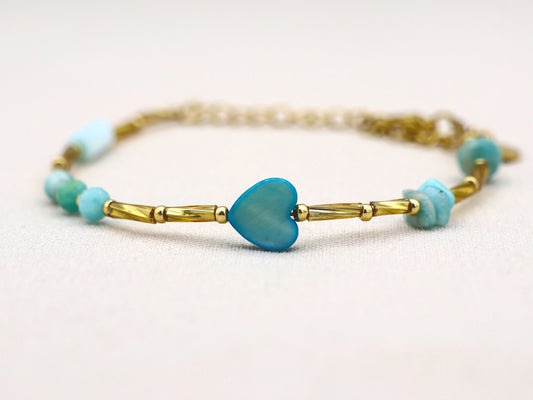 Armband Fira Love amazoniet, zilver of goud roestvrijstaal