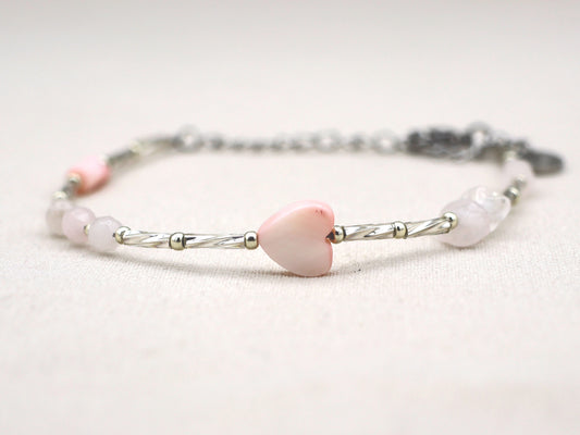 Armband Fira rozenkwarts, zilver of goud roestvrijstaal