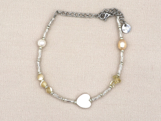 Armband Fira love, zoetwater parel en citrien, zilver of goud roestvrijstaal