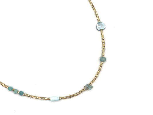 Ketting Fira love aquamarijn, zilver of goud roestvrijstaal