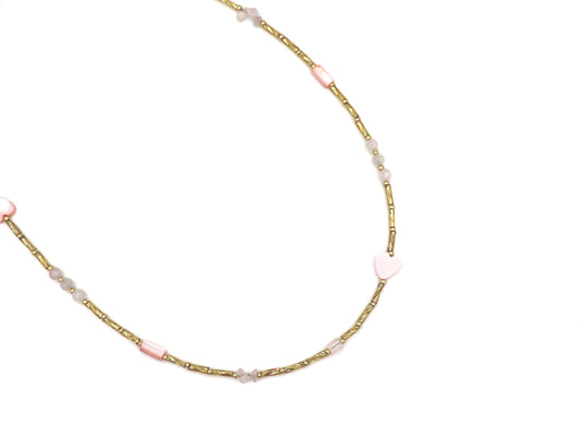 Ketting Fira love rozenkwarts, zilver of goud roestvrijstaal