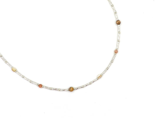 Ketting Fira jaspis en zonnesteen, zilver of goud roestvrijstaal