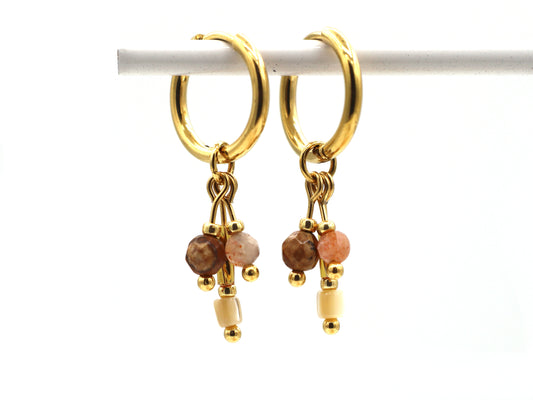 Oorbellen Fira jaspis en zonnesteen, zilver of goud roestvrijstaal