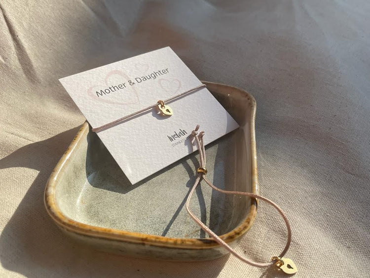 Moeder en dochter armbandenset beige, stainless steel zilver of goud