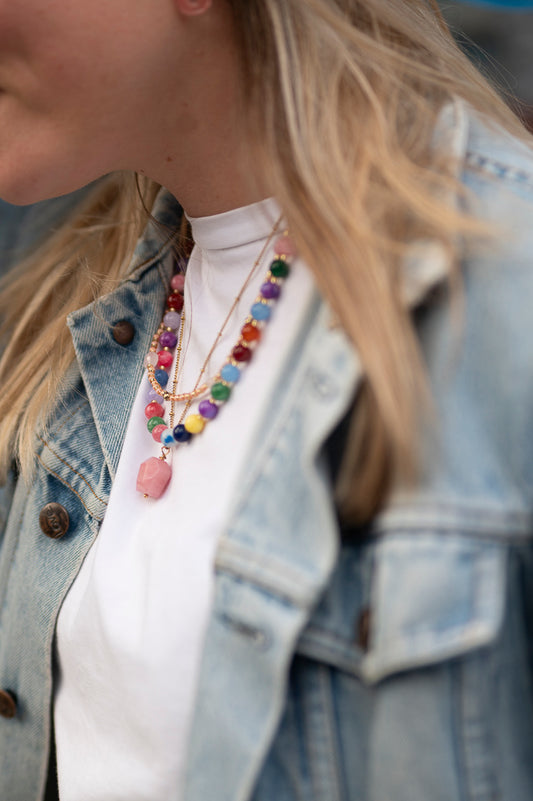Laat je inspireren door de symboliek van de edelstenen: rozenkwarts voor liefde, aquamarijn voor moed, amethist voor bescherming en aventurijn voor rust en balans. Elk stuk is met de hand gemaakt, waardoor geen enkel sieraad precies hetzelfde is – net zo uniek als de persoon die het draagt.