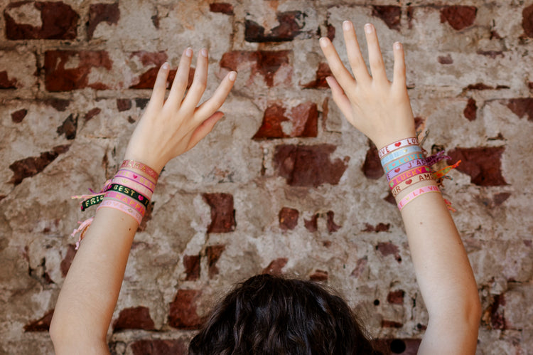 Leuk teksten om je pols in vrolijke kleuren. De armband wordt geleverd op een cadeaukaartje en is in maat verstelbaar.