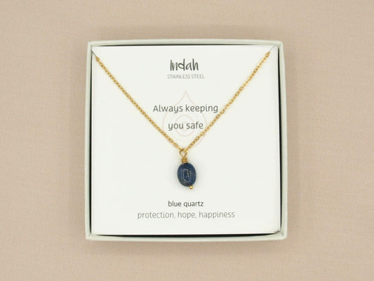 Ketting rock, boze oog-blauwe kwarts, zilver en goud roestvrij staal