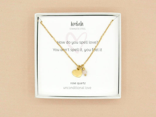 Ketting rock, hart-rozenkwarts, zilver en goud roestvrij staal
