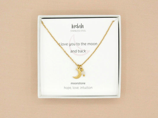 Ketting rock, maan-maansteen, zilver en goud roestvrij staal