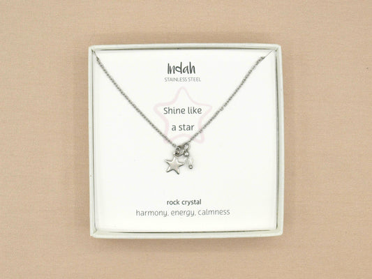 Ketting rock, ster-bergkristal, zilver en goud roestvrij staal