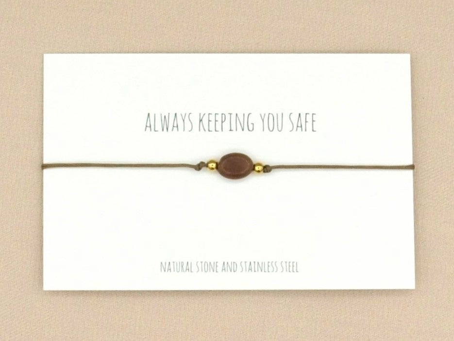 De armband is in maat verstelbaar en wordt geleverd op een kaartje met achterop de werking van de steen. Voeg het gewenste armbandje aan je bestelling toe. Mocht het gewenste armbandje onverhoopt op zijn dan voegen wij een ander armbandje toe.