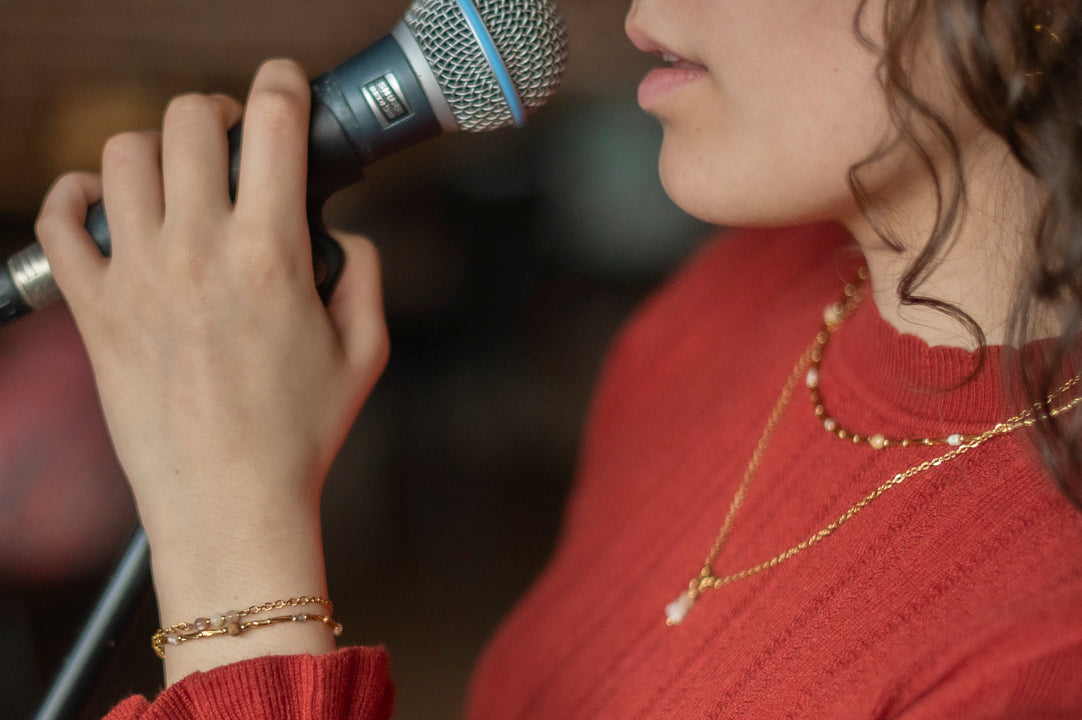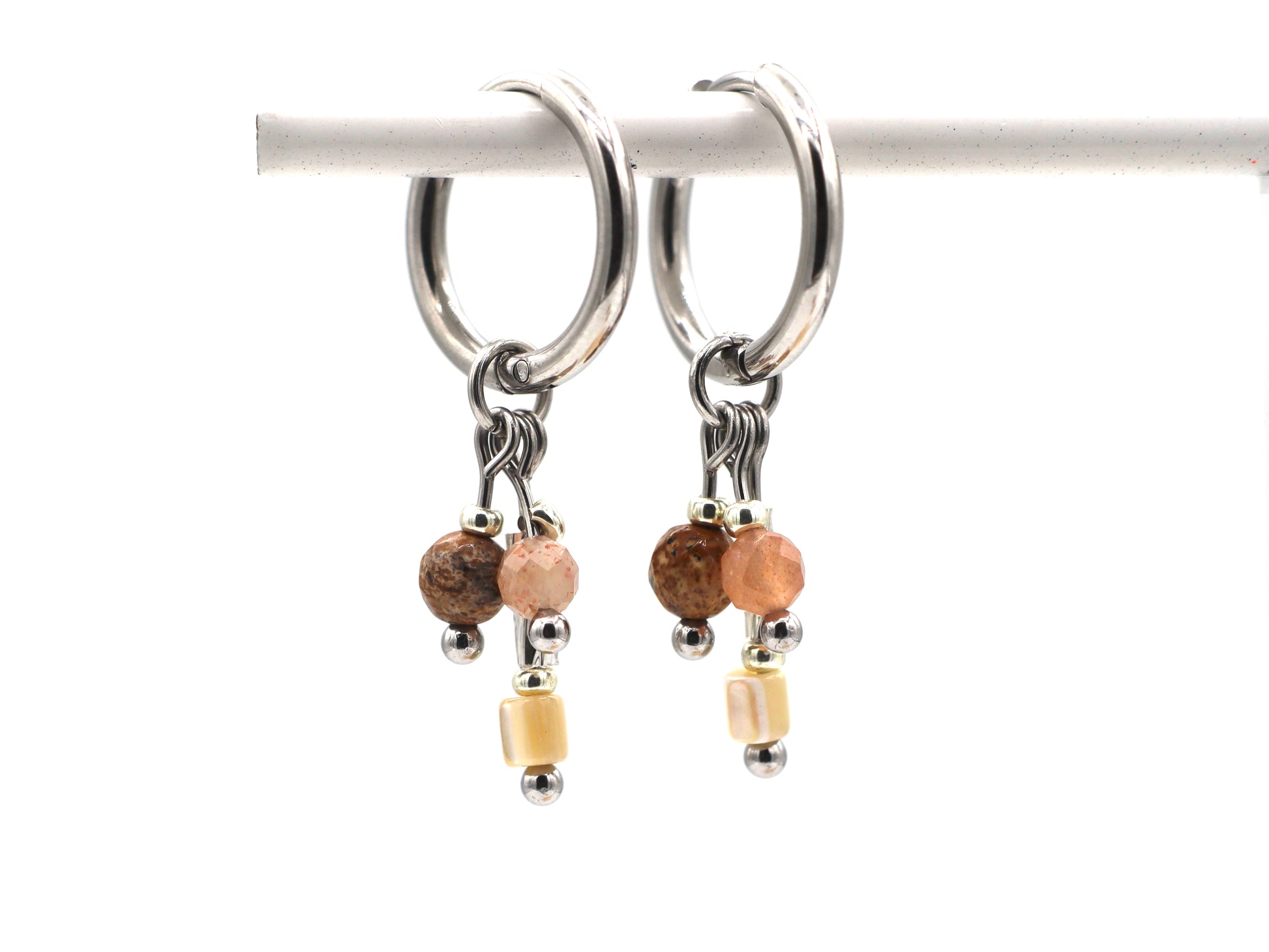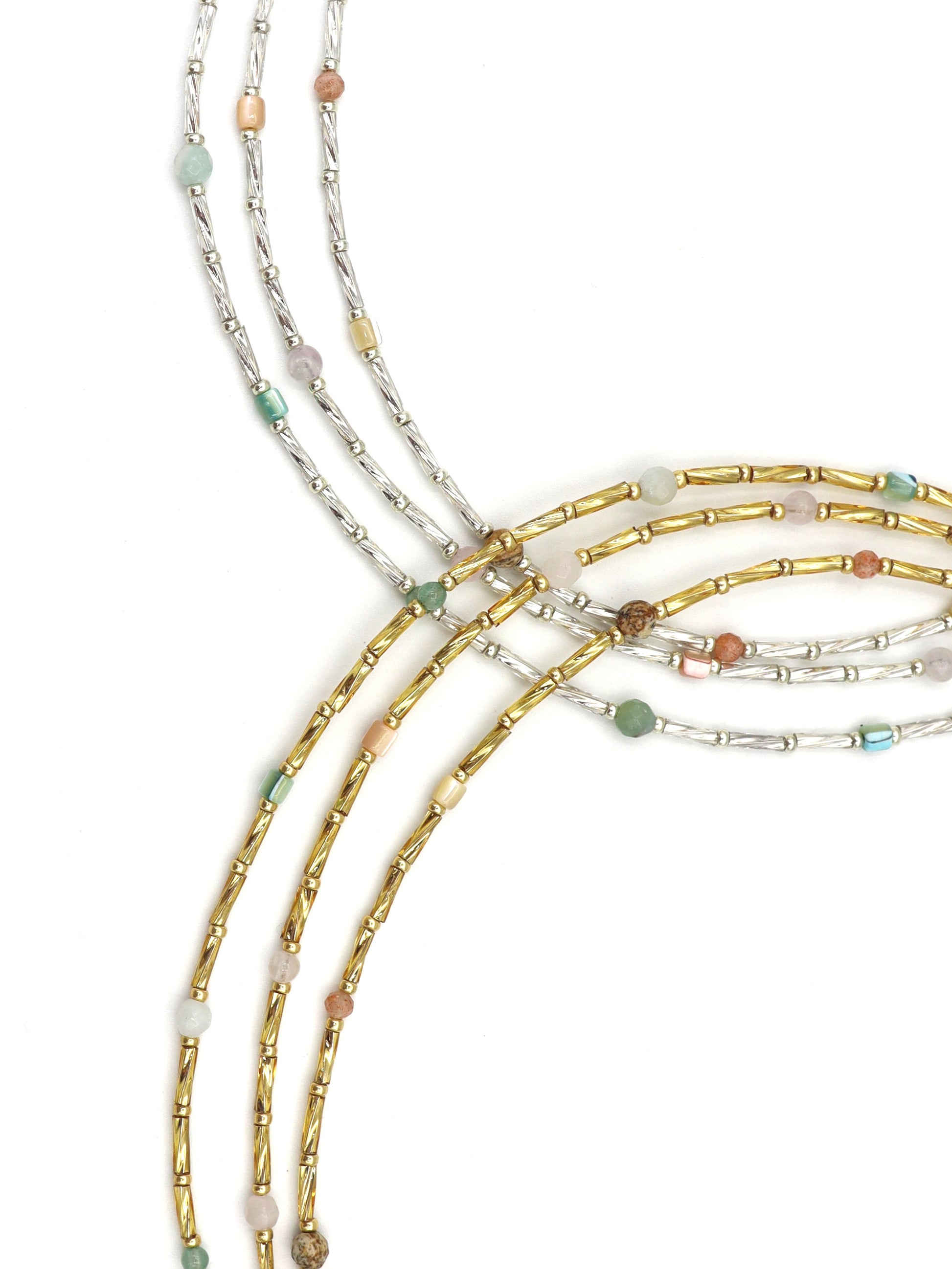 Bracelet Fira jasper and sunstone, silver or gold stainless steel